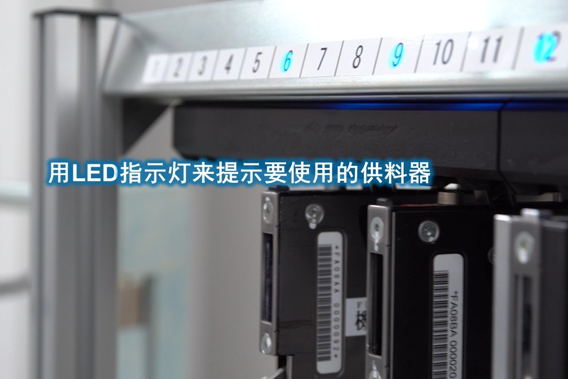 备料时高级供料器架的LED指示灯会提示可使用的供料器。