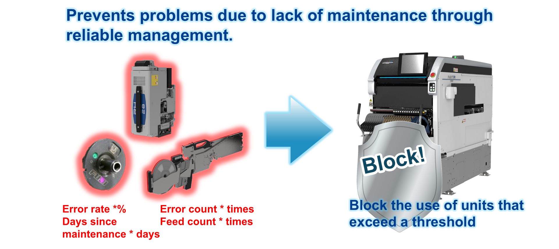 When the error rate, error count, or days since maintenance exceed set thresholds, the use of units can be blocked automatically. This reliably prevents problems due to lack of maintenance because units are not continuously used while exceeding a threshold.