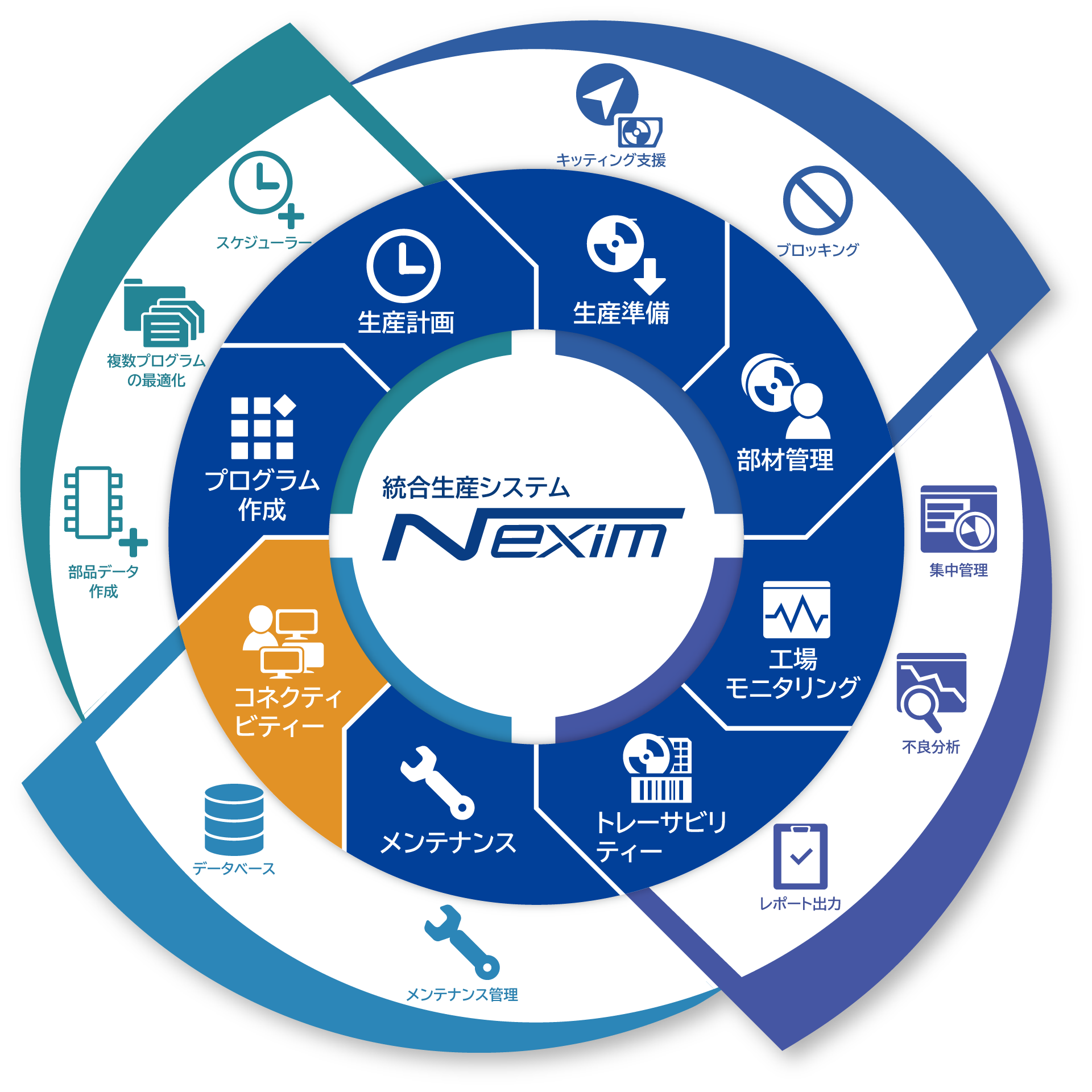 Neximは、計画・段取り・生産・保守・分析までを一元管理できる統合ソフトウェアです。