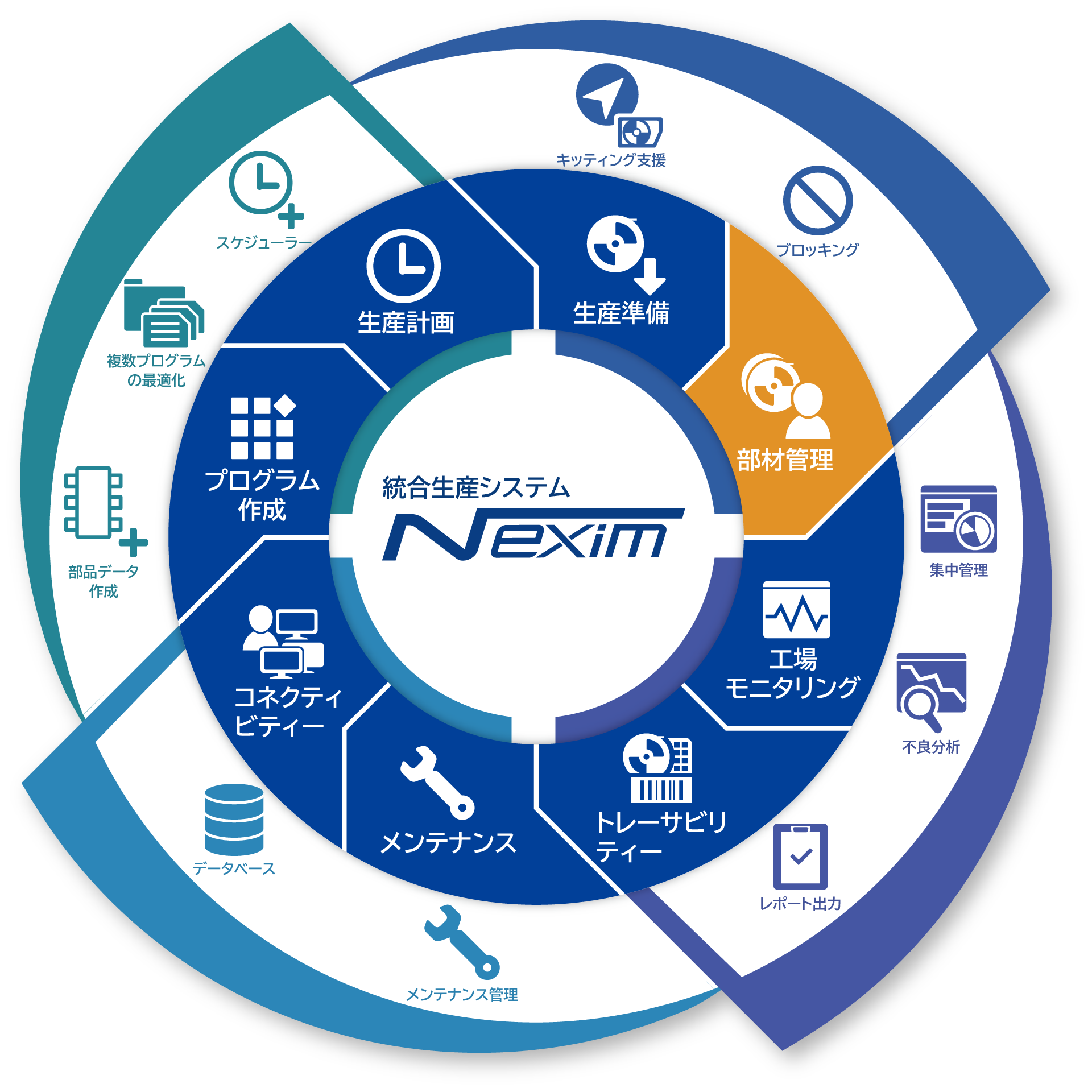 Neximは、計画・段取り・生産・保守・分析までを一元管理できる統合ソフトウェアです。
