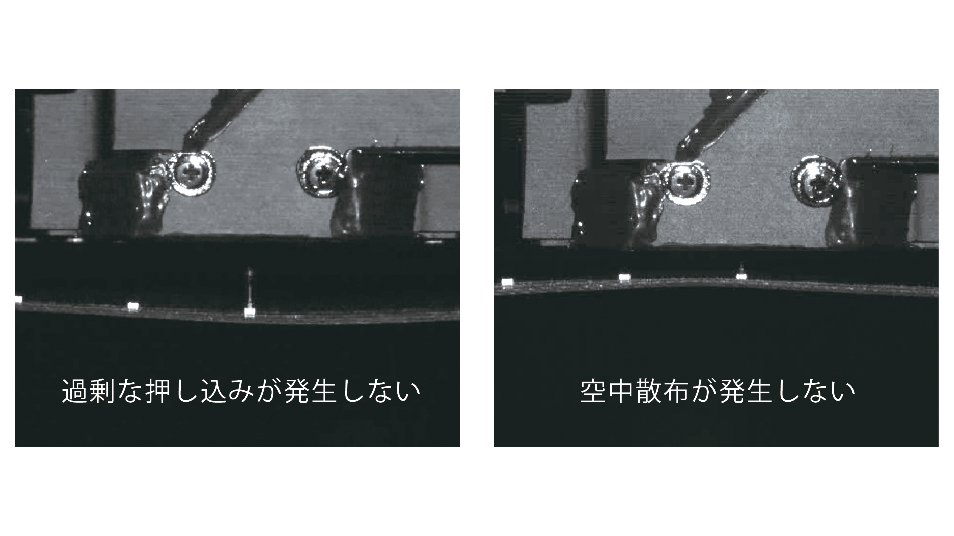 基板の反りや歪みによる装着高さの変化に追従し、適切な押し込みによる装着を実現。装着ずれを防ぐとともに、部品や基板へのストレスを防止します。