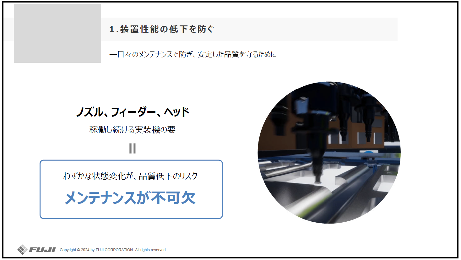 もちろん、定期メンテナンスは重要です。しかし現場ごと、ラインごとに稼働状況が異なる中で、一定期間の使用を前提としたメンテナンスだけで十分かどうかを、稼働実態に即して考えることが重要になってきます。