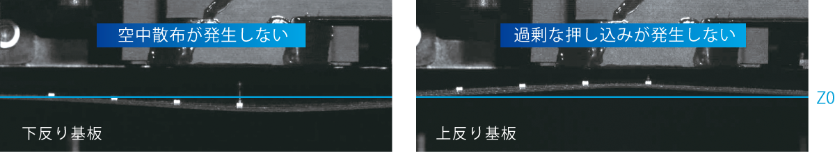 基板の反りや歪みによる装着高さの変化に追従し、適切な押し込みによる装着を実現。装着ずれを防ぐとともに、部品や基板へのストレスを防止します。